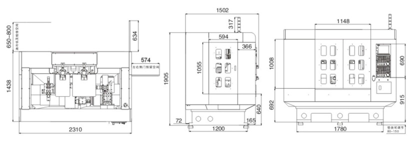 | 機(jī)床 | 機(jī)器尺寸(mm) | 2310x1440x1900 |